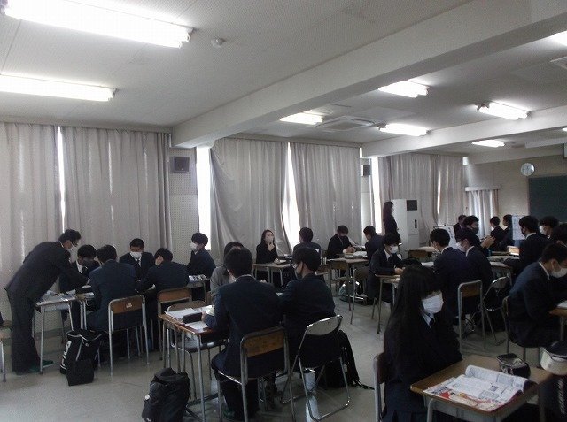 進学相談会(分野別)を開催しました 12月23日(木)、1・2年生の進学希望者を対象に分野別進学相談会を行いました。大学、短期大学、専門学校が13の分野に分かれ説明をしていただき、各分野の理解を深めることができました。