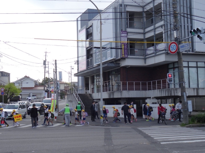 登校ボランティア~小学生の安全を守ろう~ 羽根小学校と小豆坂小学校の子どもたちの安全を守るために、本校の生徒が登校のサポートをさせてもらいました。小学生の元気な挨拶に、生徒たちも元気をもらっています! 次回は7月に実施する予定です。