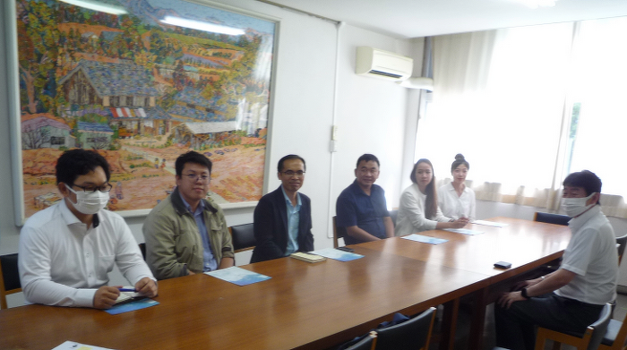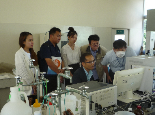 ラオス国立大学来校 8月25日(金)ラオス国立大学自然科学部化学科の先生と学生の5名が来校されました。本校は、人間環境大学と高大連携事業をおこなっており、その事業の一つとして高校の視察とガスクロマトグラフ質量分析装置による水の分析をおこないました。