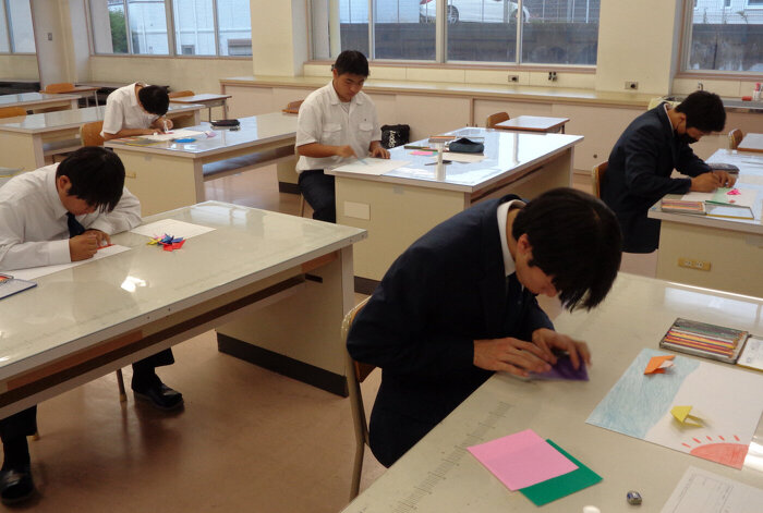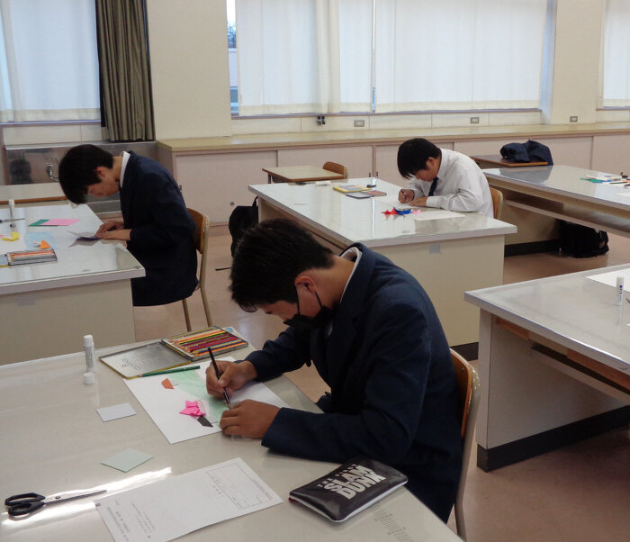 11月10日(金)生活コースを選択している2年生の希望者6名が、 第46回家庭科保育技術検定造形表現技術3級を受検しました。試験中は指定された折り紙をきれいに折ることや、幼児に伝わるようなイラストを描き、工夫を凝らして製作できました。