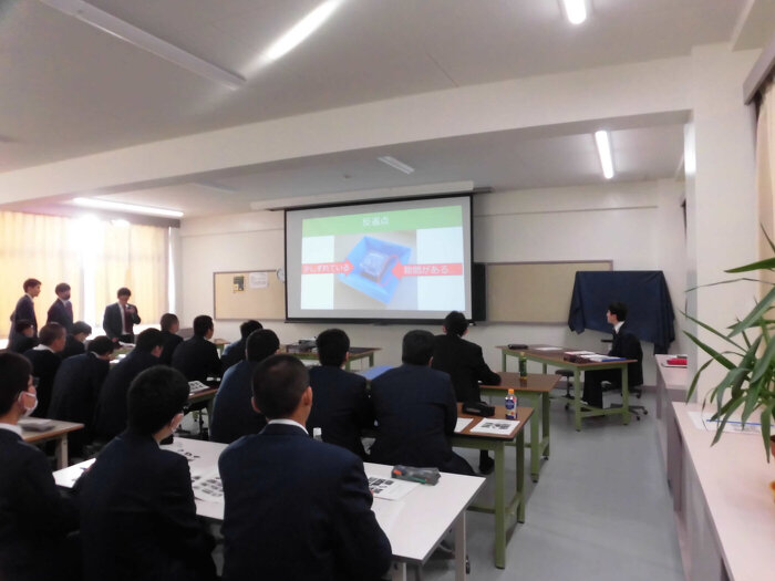 都市工学科3年生による課題研究発表会 1月19日(金)に都市工学科3年生による課題研究発表会が行われました。今年度は、「資格取得」「校内整備-駐輪場制作-」「土木工事実習」「CAD-土木工事における3Dプリンターの活用-」を課題として取り組んできました。2年生と職員を迎えての発表はとても緊張したと思いますが、とてもいい経験になったと思います。