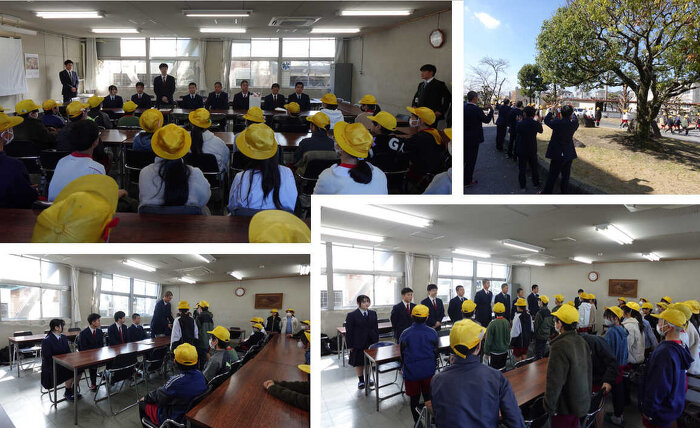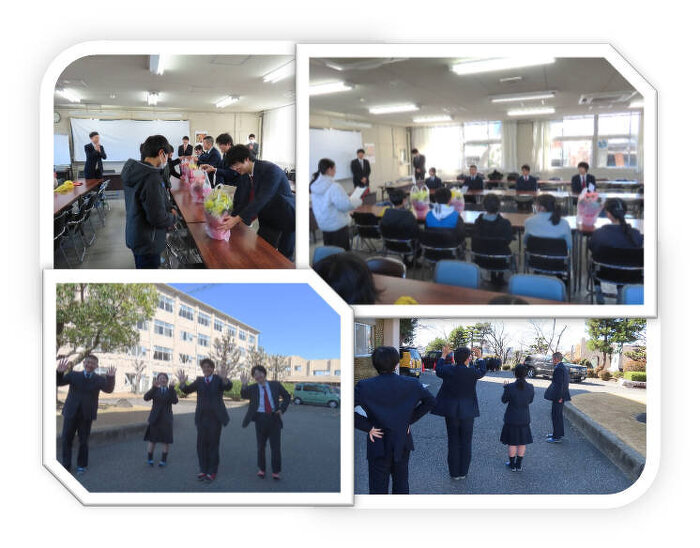 2月19日と26日に羽根小学校と小豆坂小学校の代議員の皆さんが登校ボランティアのお礼をしに来てくれました。登校ボランティアとは、地域の小学校へ登校中の子どもたちをサポートし、安全に学校まで見送るという活動です。きれいな花束を贈呈してくれました。活動に参加している生徒の代表として、生徒会役員と野球部の代表者で感謝の言葉をいただきました。岡崎工科高校の生徒会長は、「子どもたちの笑顔を見て元気をもらっています」と話していました。来年度も登校ボランティアで子どもたちから元気を貰いつつ、子どもたちの安全を守っていきましょう。